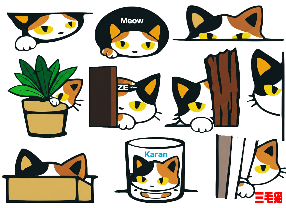のぞき見ポーズがクセになる、ゆるシュールな猫イラスト