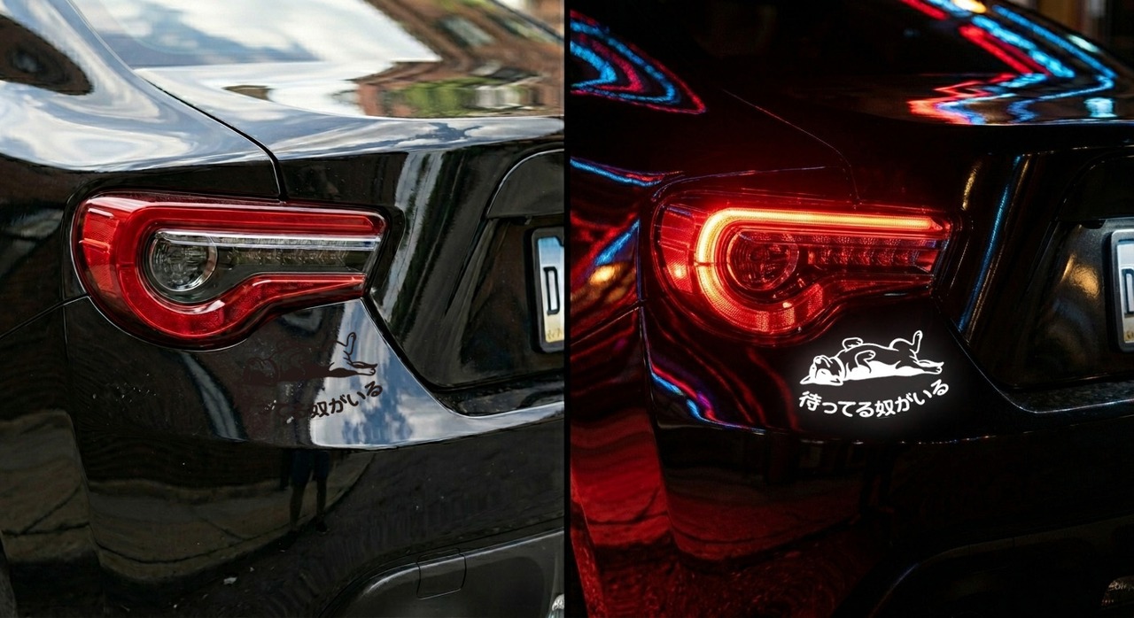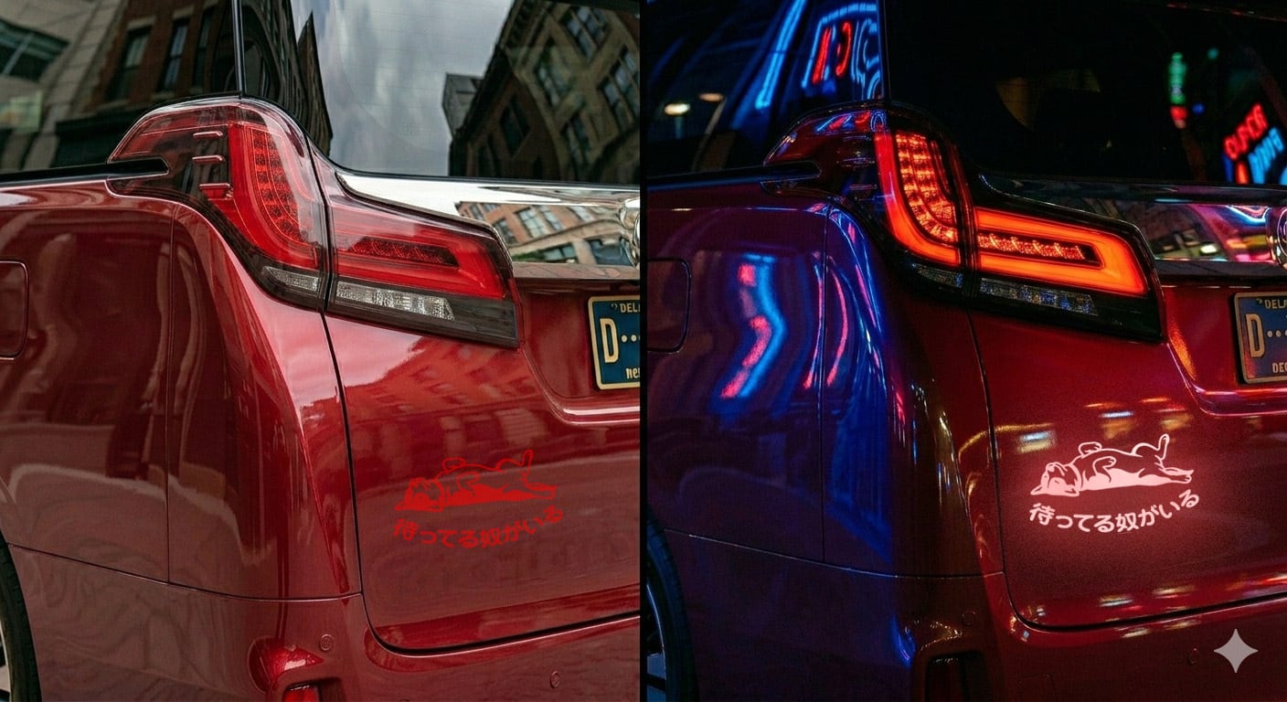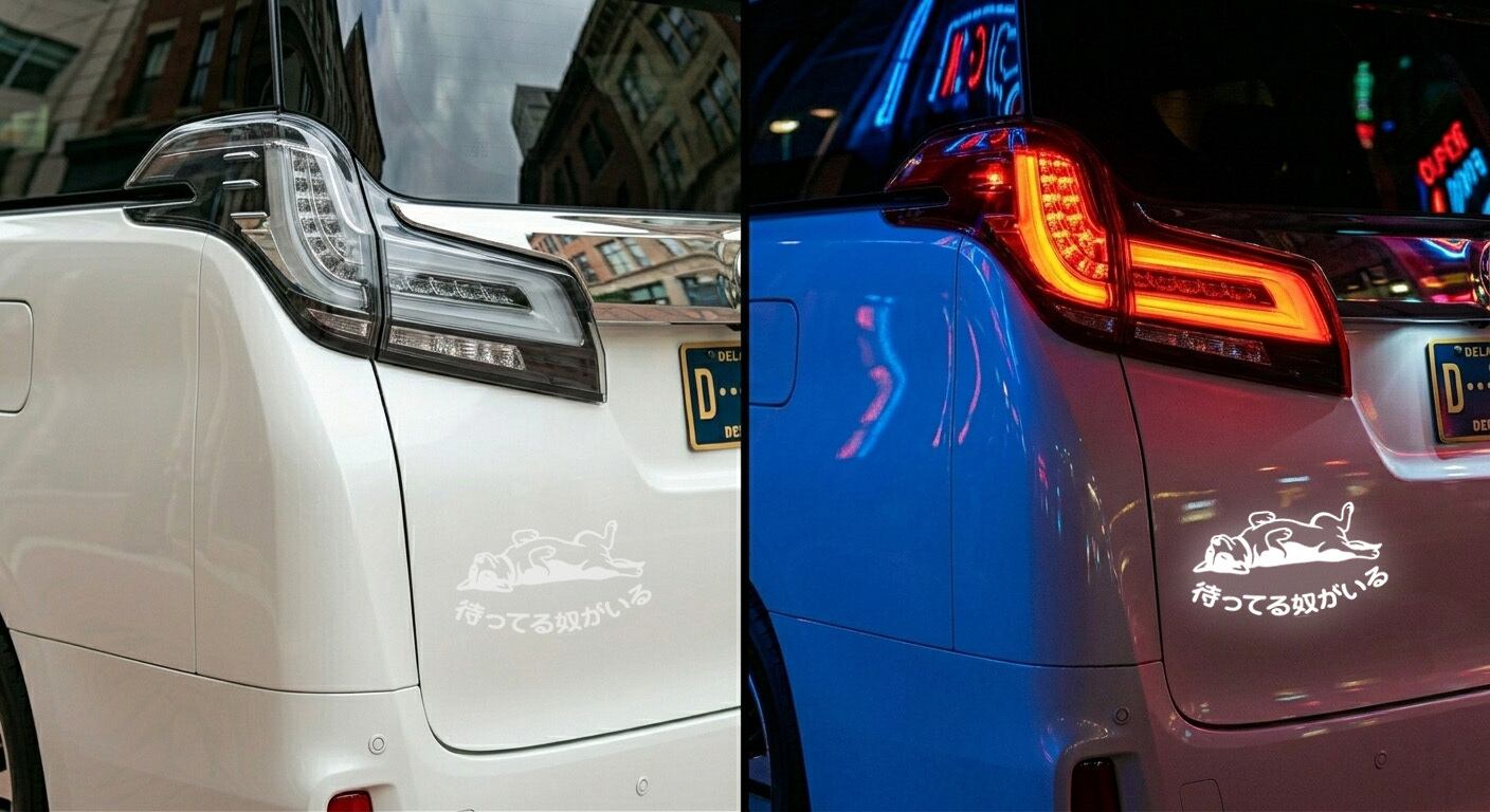 俺のうちの子反射ステッカー(夜浮かび上がるうちの子の姿)