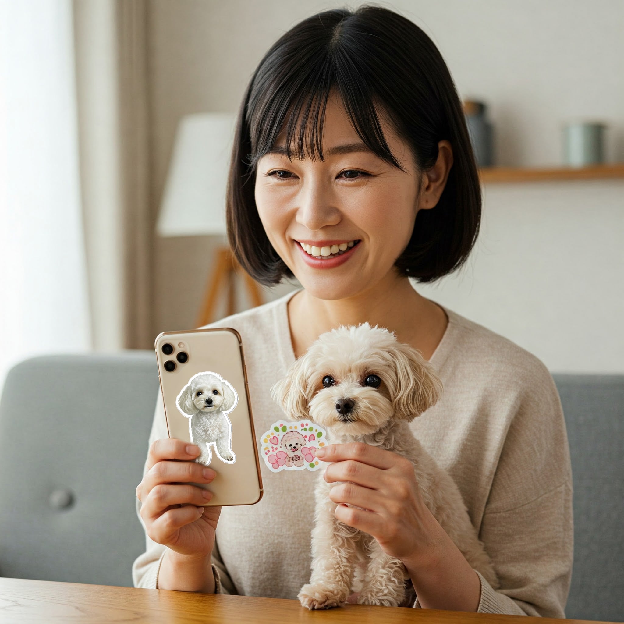 お気に入りのペットのポーズや表情を元に、世界で一つだけの可愛いフレークシールを作成することができます。愛犬、愛猫、ウサギ、フェレット、ハムスター、カメなど、どんなペットでもOKです。自分のペットの形に合わせたオリジナルステッカーを作成できます。